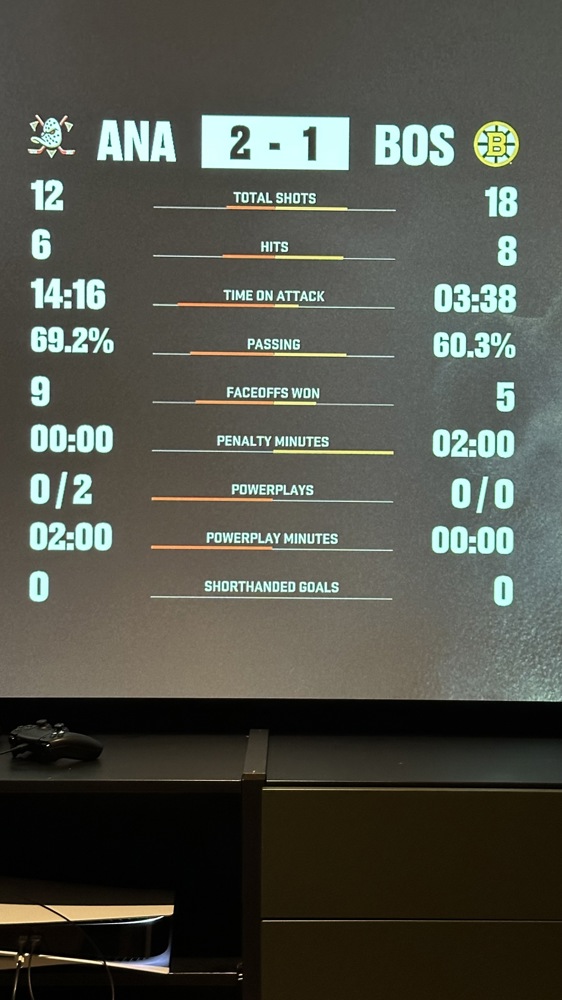 ANAMouhon virtuaalisessa jääkiekkoliigan ottelussa Anaheim Ducks voitti Boston Bruinsin 2-1. Ottelu pelattiin ilman jatkoaikaa tai rankkareita. Anaheimin Mikko oli voittava pelaaja, kun taas Bostonin Konsta hävisi. Anaheim Ducks oli tehokkaampi hyökkäysalueella, vaikka laukauksia oli vähemmän kuin Bostonilla. Ottelu pelattiin 17. lokakuuta 2025 Mouho 2026 -turnauksessa Juntit-konferenssissa.