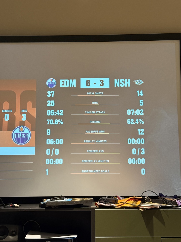 EDMPelin, joka pelattiin Mouhon virtuaalisessa jääkiekkoliigassa, voitti Matiaksen joukkue Tuomon joukkuetta vastaan numeroin 6-3. Ottelu pelattiin ilman jatkoaikaa tai voittomaalikilpailua. Matiaksen joukkue laukoi 37 kertaa ja Tuomon joukkue 14 kertaa. Matiaksen joukkue teki myös enemmän taklauksia, 25 vs. 5. Vaikka Tuomon joukkue dominoi aloituksissa voittaen 12 kertaa Matiaksen 9 voittoon, heidän syöttöprosenttinsa jäi 62,4% kun taas Matiaksen joukkueella oli 70,6%. Peli pelattiin 10. lokakuuta 2025.