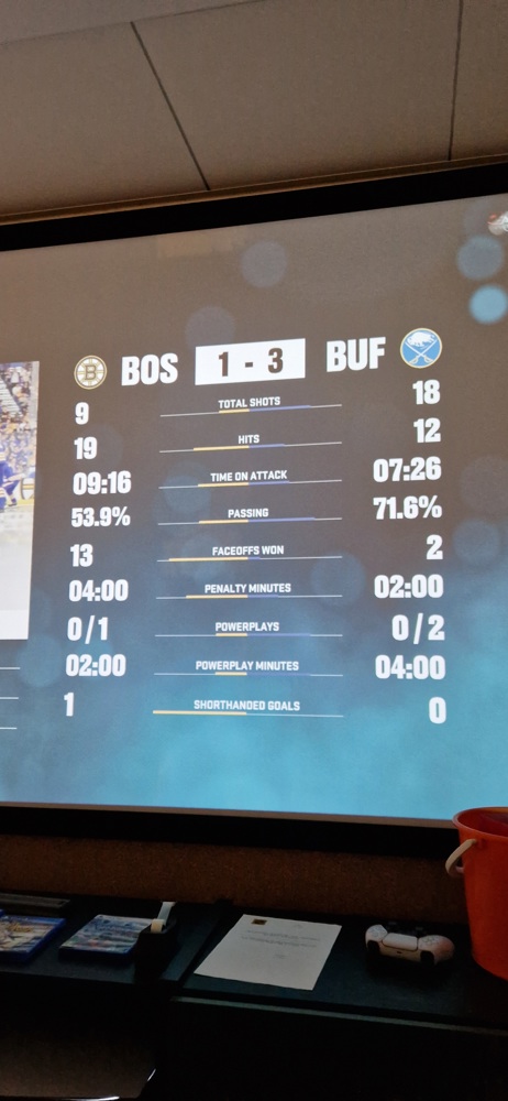 Mouhon 2025 -liigan Kukkakauppa-konferenssin ottelussa Buffalo Sabres voitti Boston Bruinsin lukemin 3-1. Ottelu pelattiin 4. huhtikuuta 2025. Buffalo Sabresin kotijoukkue iski kolme maalia yhdeksästä laukauksesta, kun taas Boston Bruins sai aikaan yhden maalin kahdeksastatoista laukauksesta. Buffalo hallitsi ottelua tehokkaammalla hyökkäyspelillä ja paremmalla syöttöprosentilla, vaikka Boston vei enemmän aloituksia ja taklauksia. Ottelussa ei pelattu jatkoaikaa eikä ratkaistu voittajaa rangaistuslaukauksilla. Voittajajoukkueen valmentaja Jouko ja häviäjäjoukkueen valmentaja Arto kokivat Elo-rating muutoksia, Joukon joukkueen arvo nousi kymmenen pistettä ja Arton laski saman verran.