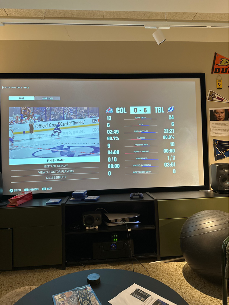 Mouho 2026 -liigan Henut-konferenssissa Tampa Bay Lightning (Joel) voitti Colorado Avalanchen (Jani) vakuuttavasti maalein 6–0. Ottelu pelattiin 9.12.2025, eikä ratkaisua tarvittu jatkoajalla tai voittomaalikilpailussa. Joel hallitsi peliä selvästi: Tampa Bay vei maalinteon lisäksi laukaukset (24–13), hyökkäysajan (21:21 vs. 2:49) ja syöttöprosentin (86,8 % vs. 60,7 %). Molemmat joukkueet taklasivat kuusi kertaa. Tampa Bay voitti myös aloitukset niukasti (10–9). Jani otti neljä minuuttia jäähyjä. Voiton myötä Joel nosti Elo-luokitustaan kahdeksalla pisteellä (1565), kun taas Janin pisteet laskivat (1294).