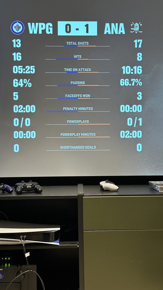 Anaheim Ducks (Mikko) voitti tiukan ottelun Winnipeg Jetsiä (Jaakko) vastaan lukemin 1–0 Mouhon virtuaaliliigan Juntit-konferenssissa. Ottelu ratkesi varsinaisella peliajalla ilman jatkoaikaa tai voittolaukauskilpailua. Ducks hallitsi kiekkoa (10:16 hyökkäysaikaa vs Jetsin 5:25) ja laukoi enemmän (17–13), vaikka Jets taklasi ahkerammin (16–8). Voitto nosti Mikon Elo-luokitusta 16 pisteellä.