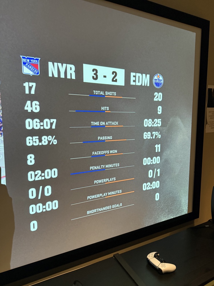 New York Rangers (Heimopäällikkö) voitti Edmonton Oilersin (Kuningas Fredi) tiukassa ottelussa jatkoajalla numeroin 3–2 Mouho 2026 -liigan Tammisen Pekat -konferenssissa. Edmonton hallitsi laukauksia (20–17), mutta Rangers pelasi fyysisesti, tehden peräti 46 taklausta. Ottelu ratkesi jatkoajalla, voittajalle Elo-pisteitä +14.
